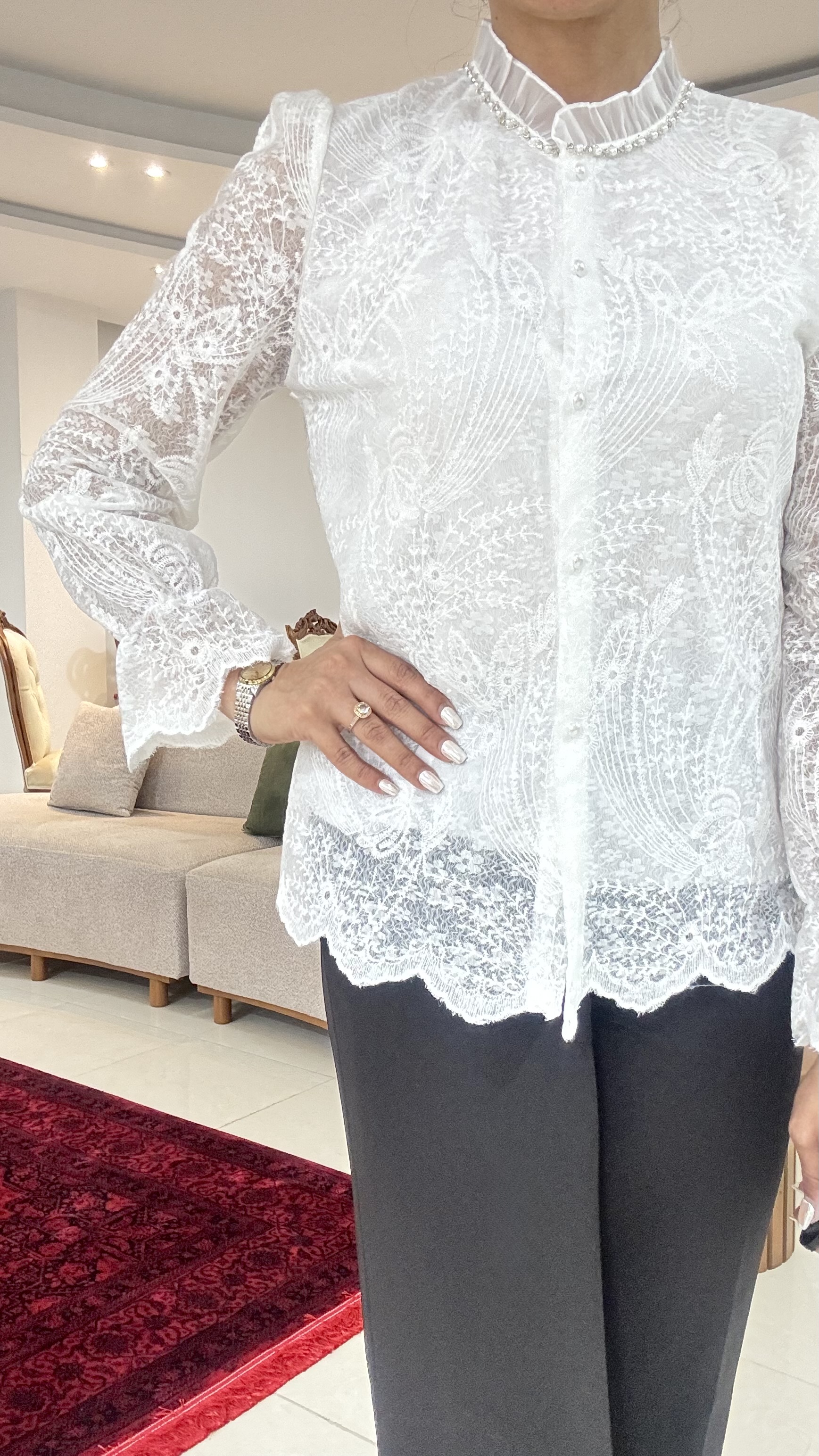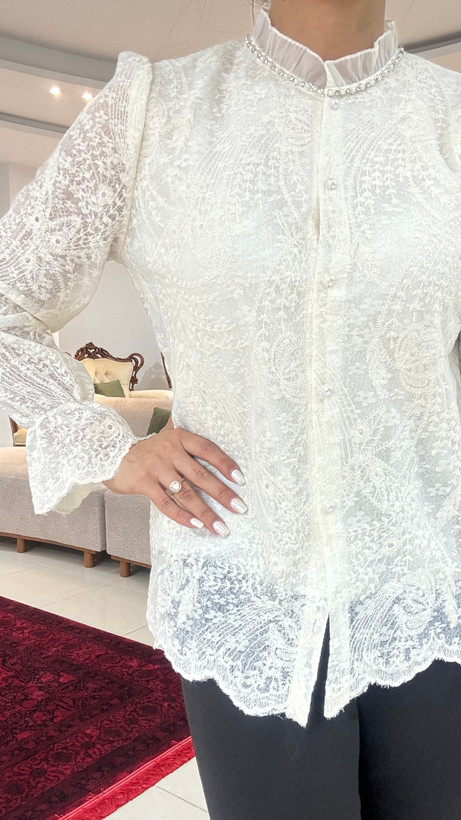 شومیز گیپور مجلسی آستر دار مدل رز😍